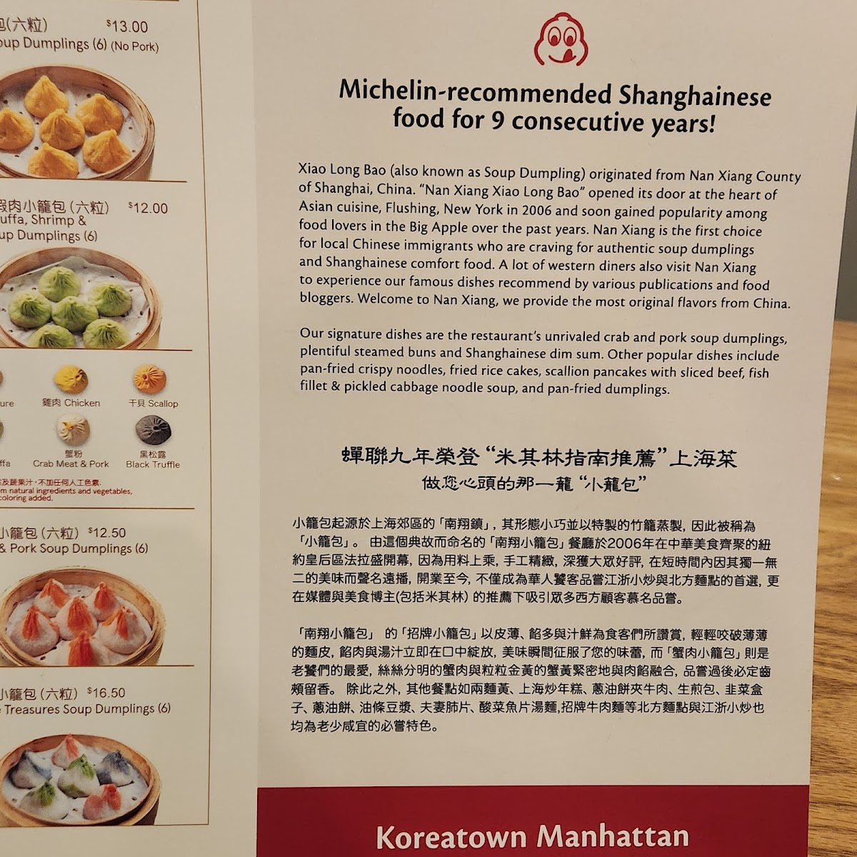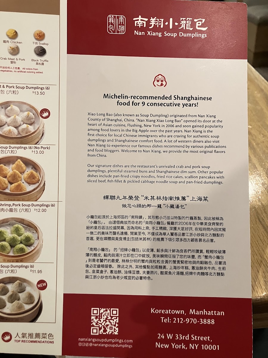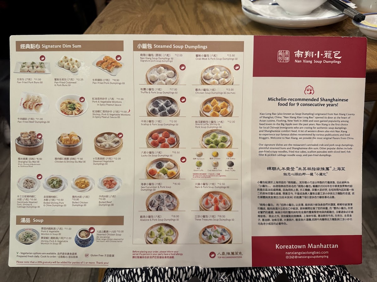 Nan Xiang Xiao Long Bao-Manhattan Menu